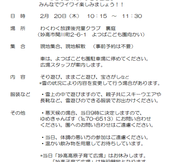 ゆきあそびによっといで開催します。